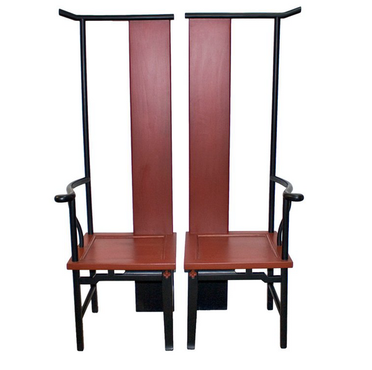 Hand Built Black & Red Traditional Chinese Couple Tea Chair Table Set