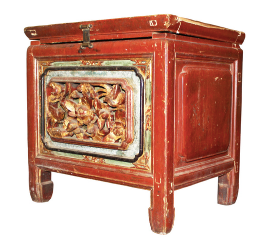 Antique Wooden Handcarved Black & Red Golden Flower Side Table