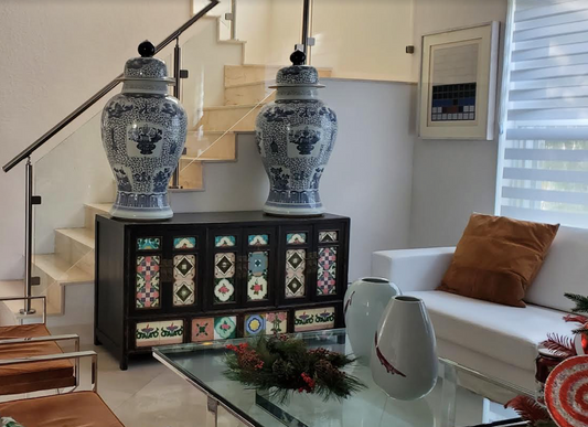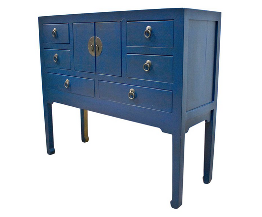 Chinese Furniture Online Elmwood Console Table, Hand Crafted Ming Style Cabinet in Matte Blue