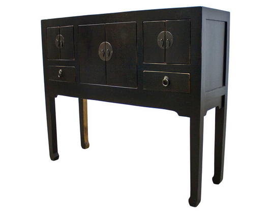 Chinese Furniture Online Elmwood Console Table, Hand Crafted Ming Style Cabinet in Matte Black