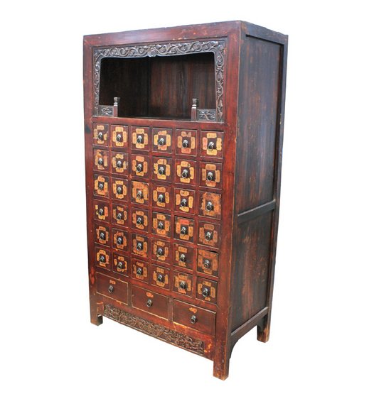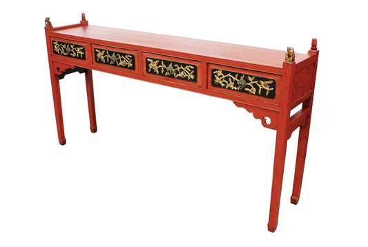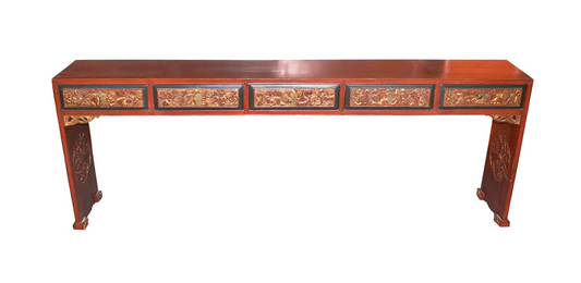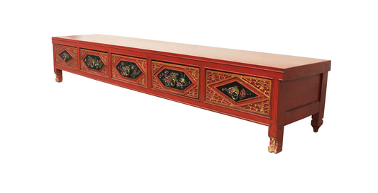 Chinese Antique Wooden Red 5 Drawer Low Side Console