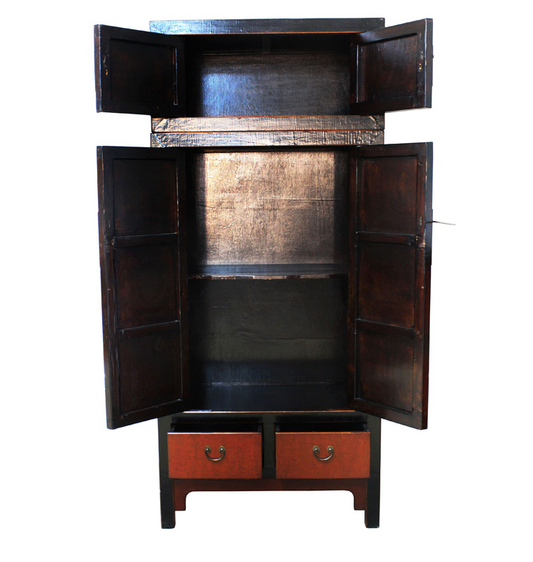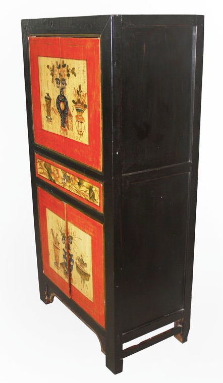 Antique Hand Painted Orange & Yellow Mongolian Tall Cabinet