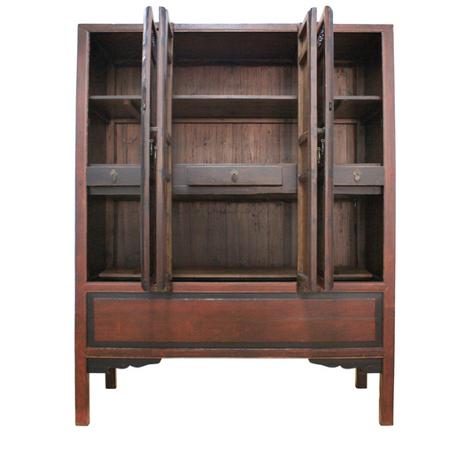 Antique Chinese Red & Gold Animal Painting Tall Cabinet